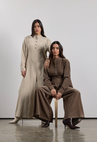• one size jumpsuit with inner belt.